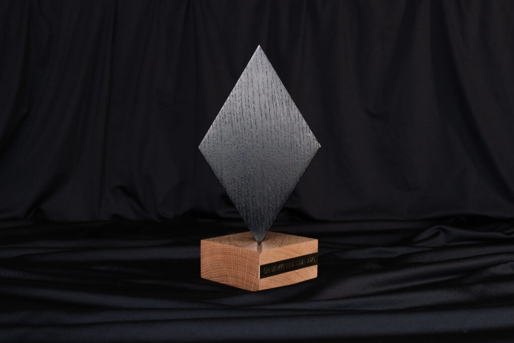 Salmiakkigaalassa parhaan makeisen valmistaja saa uniikin Salmiakki Finlandia 2025 -palkinnon, jonka on suunnitellut ja valmistanut helsinkiläinen muotoilija, salmiakkifani Teppo Lakaniemi.